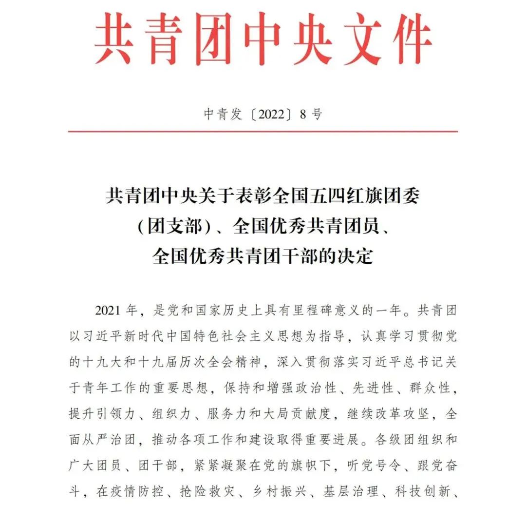 2022年是中國共青團成立100周年。近日,共青團中央發布《共青團中央關于表彰全國五四紅旗團委(團支部)、全國優秀共青團員、全國優秀共青團干部的決定》,大智集團團委榮獲“全國五四紅旗團委”稱號。