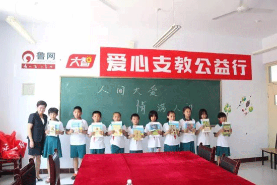 活動現場,王現芹將承載著大智愛心的書籍贈予店子小學,收到書籍的同學們臉上洋溢起幸福的笑容。
