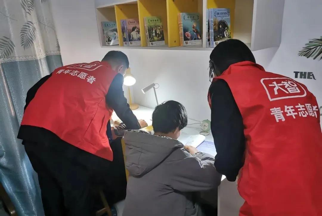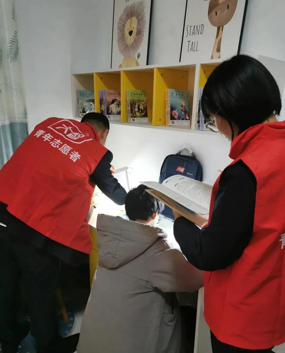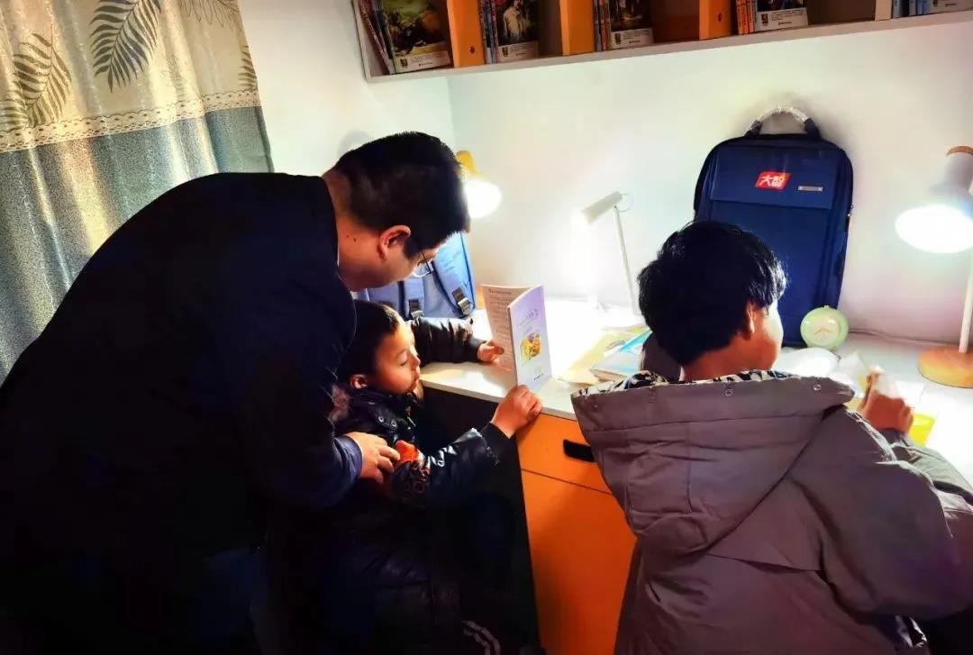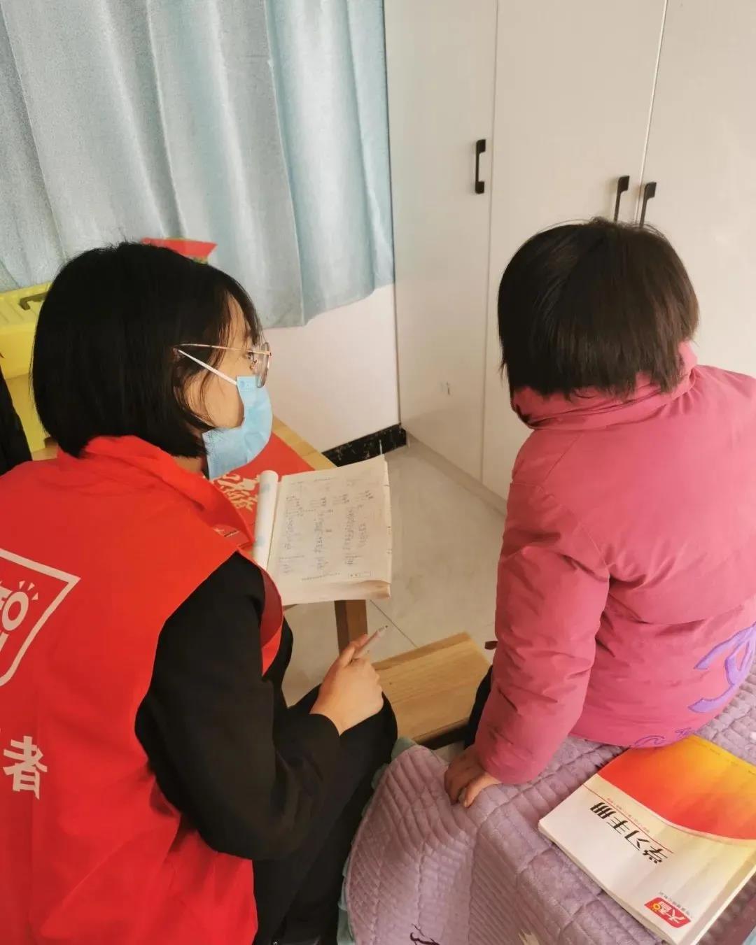志愿者幫助孩子檢查寒假作業